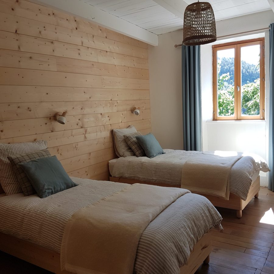 Vous serez logé dans une maison en pierre typiquement ardéchoise surplombant la vallée.  Les chambres sont confortables alliant le charme du bois et de la pierre.